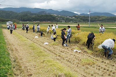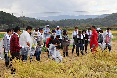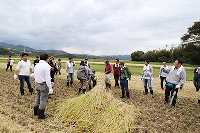 - 現地着・稲刈り体験開始(1時間半ほど)